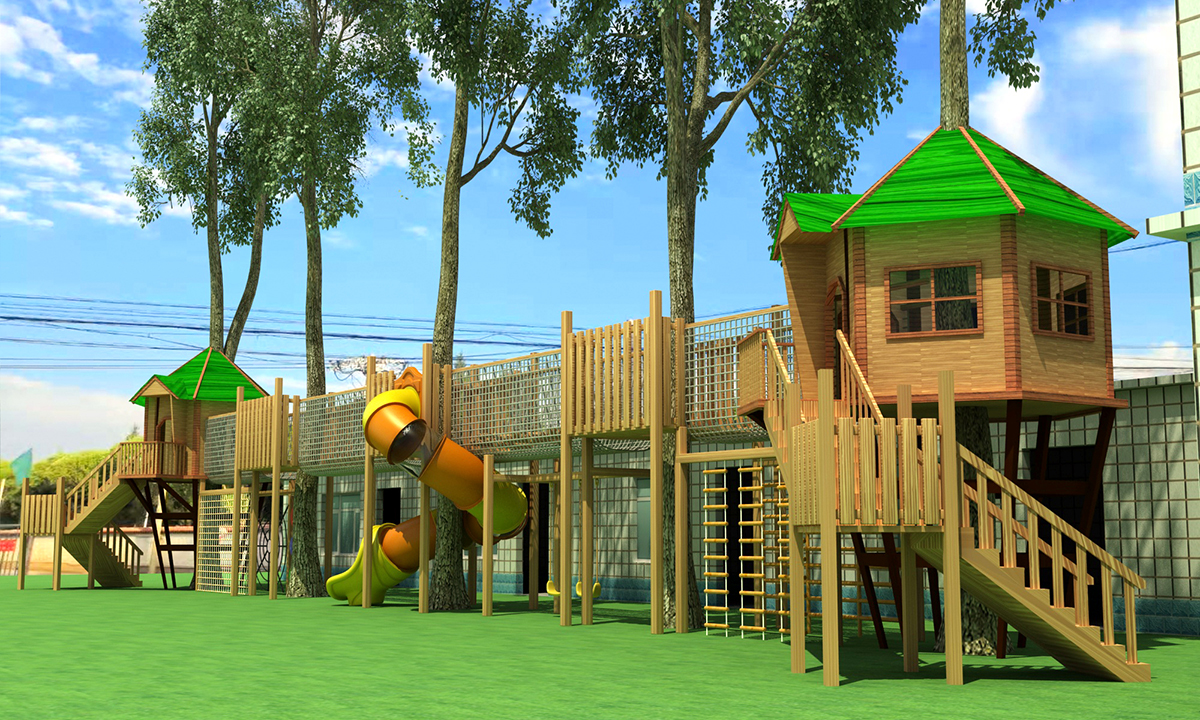 室外木質樹屋滑梯