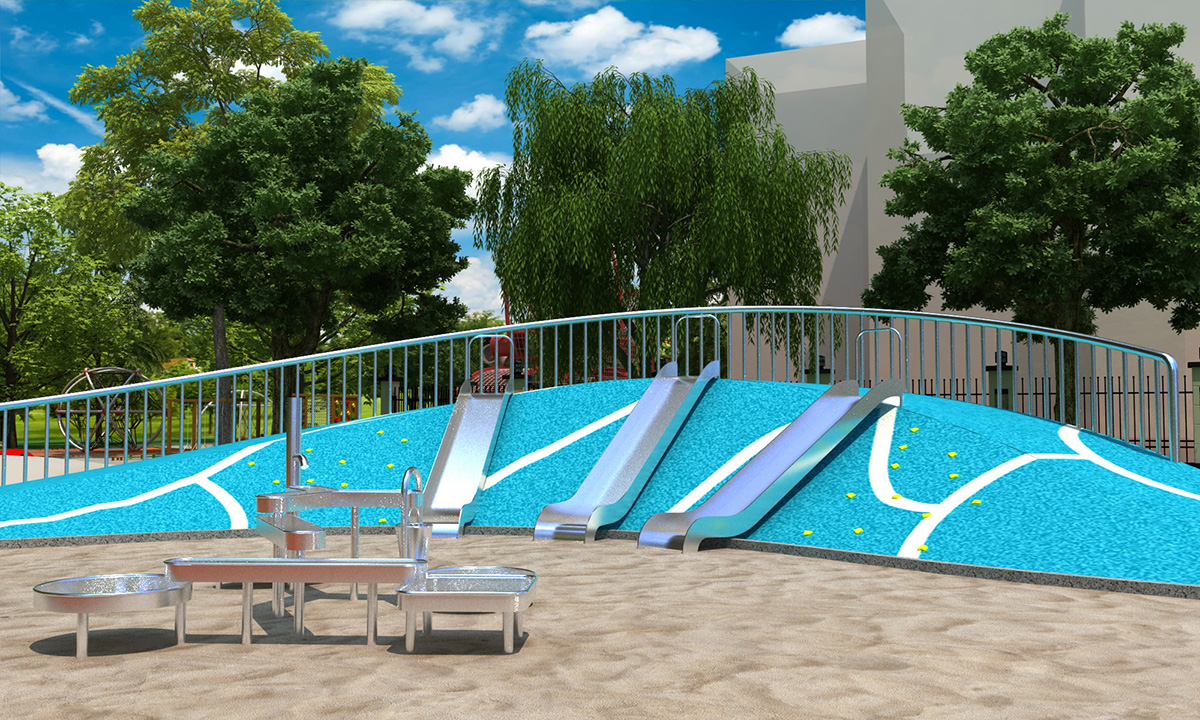 304不銹鋼:滑梯采用304不銹鋼,拉絲面,壁厚不小于3mm。
