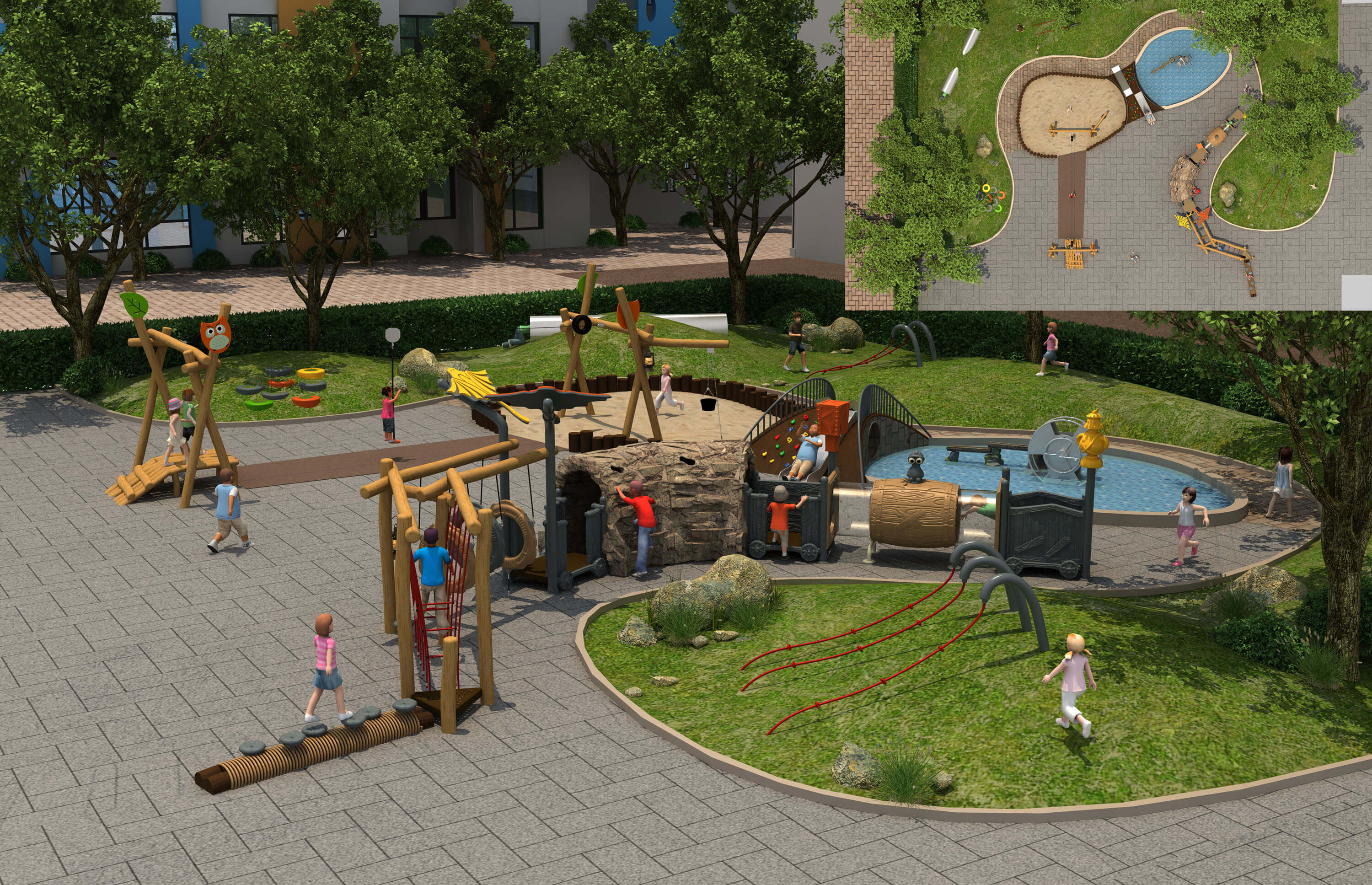 景觀規劃:景觀手法規劃場地,形成交互,增強體驗。 流線空間:提取歷史文化,植入到空間,形成空間變化。 設備植入:獨特的造型、肌理、色彩等融入到場景當中。 場景表達:空間串聯,打破常規,塑造特色的主題樂園。 故事串聯:利用故事吸引流量,給運營打造良好的基礎。 產品運營:文化結合設計,讓兒童在游玩的同時了解當地文化。