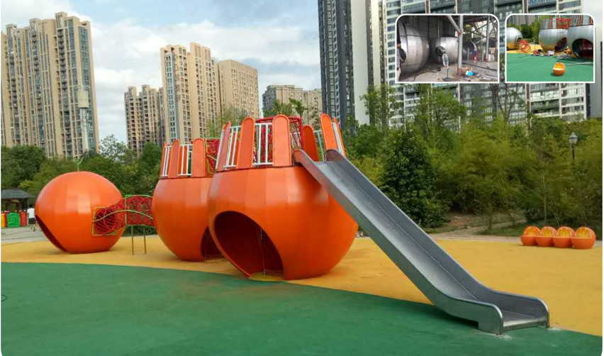 304不銹鋼:滑梯采用304不銹鋼,拉絲面,壁厚不小于3mm。