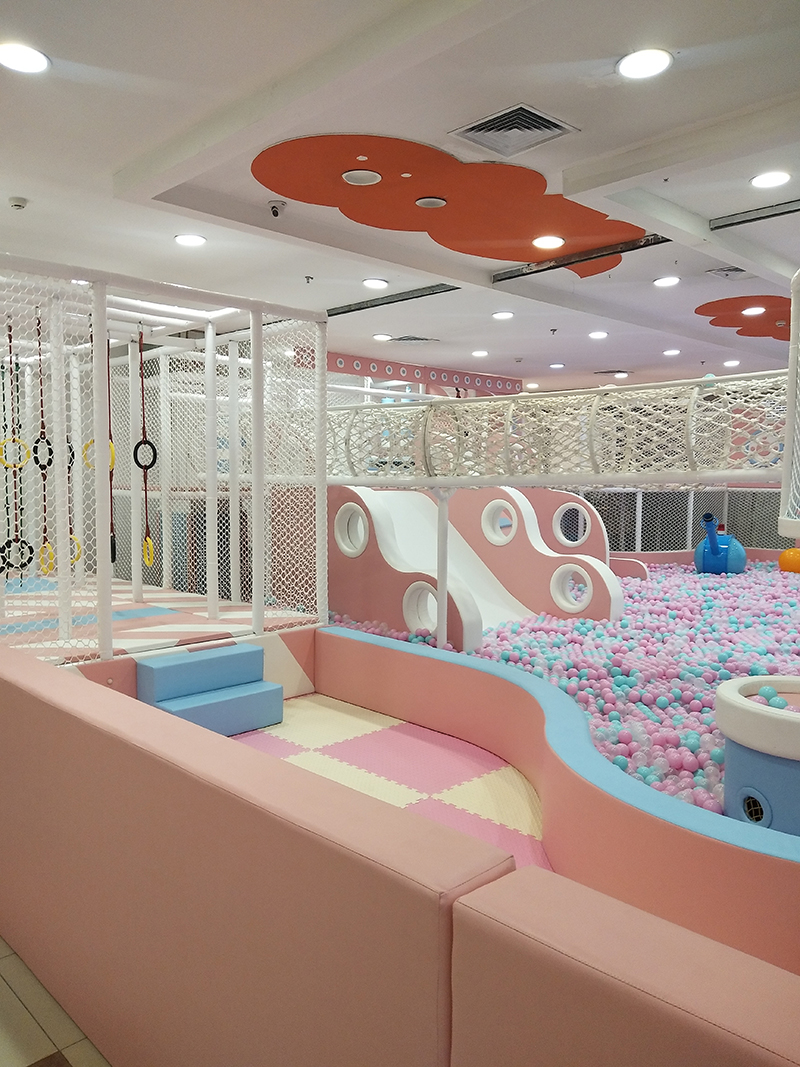 河北燕郊新世界百貨是一個商超休閑一體化的場所,位于燕郊比較繁華的區域,客戶流量比較大。河北燕郊新世界百貨與玩具廠商高樂迪攜手一起打造孩子休閑娛樂場所——淘氣堡兒童樂園。