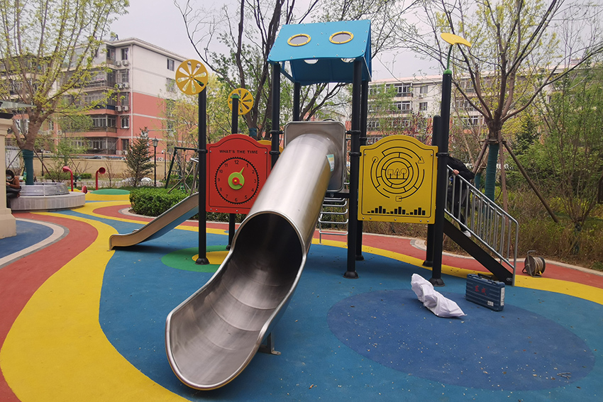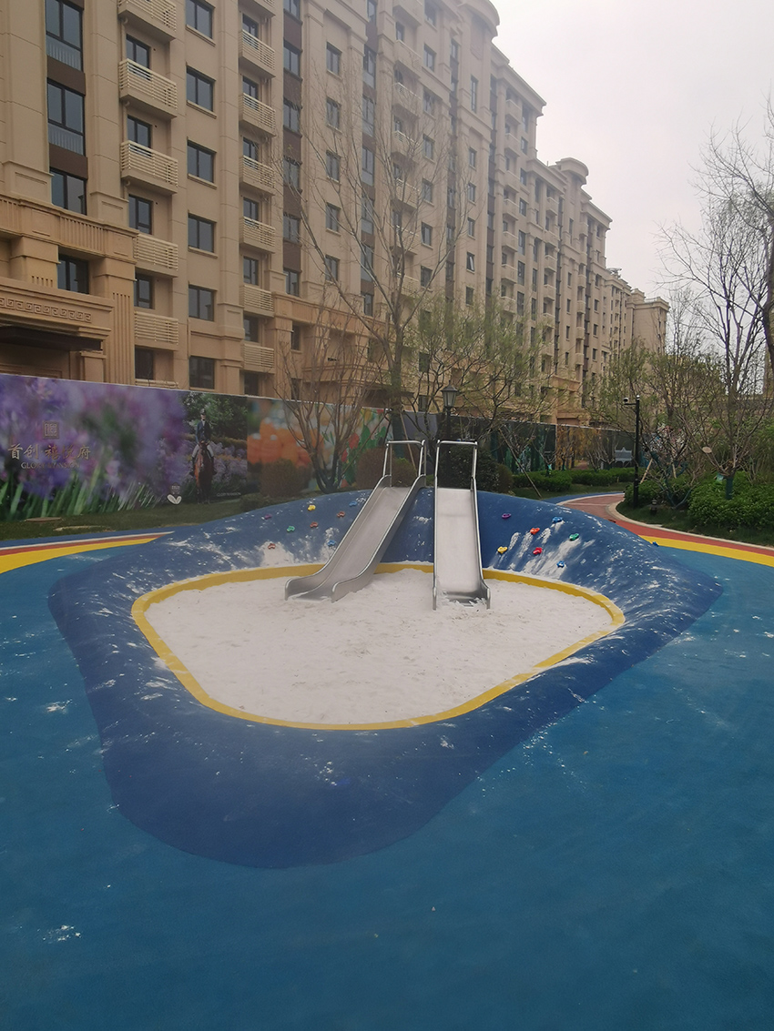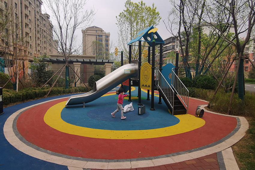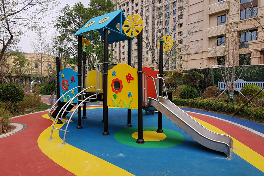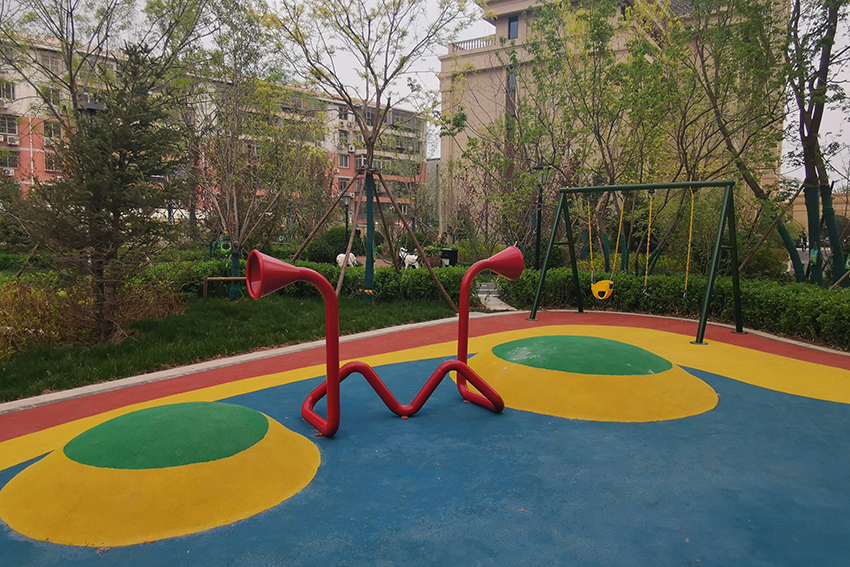 禧悅府位于北京市密云區,總占地面積是56254 m2,擁有住戶732 戶,屬于比較好的居住社區。為了豐富社區兒童的娛樂生活,該住宅區與高樂迪合作,搭建微地形無動力兒童樂園。主要設施有:不銹鋼滑梯、微地形樂園、傳音筒、秋千、搖搖椅等。