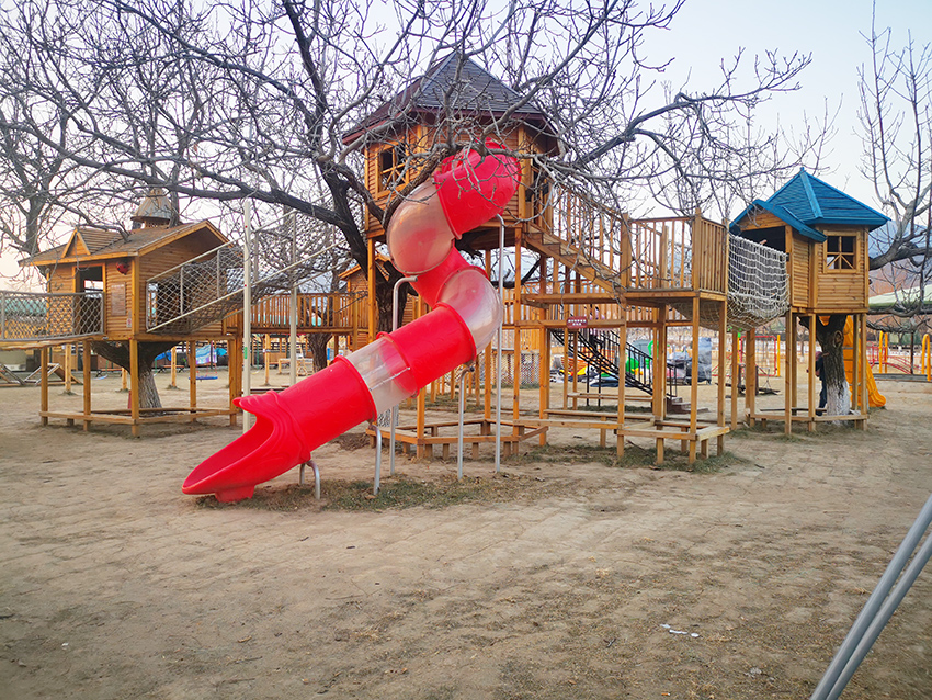 樹屋與螺旋滑梯組合在一起,增加了可玩性,讓孩子體驗不一樣的快樂。