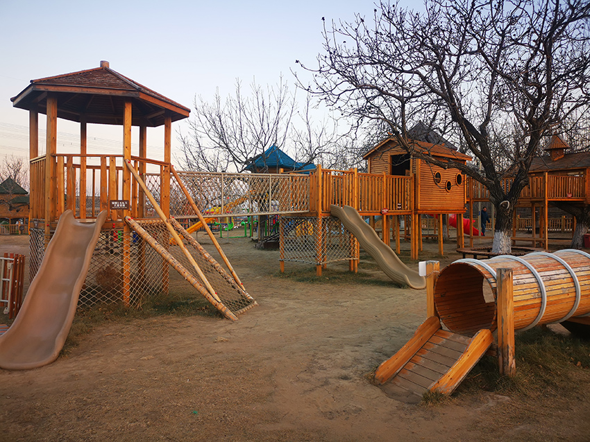北京綠野仙蹤郊野樂園整體造型充滿童話色彩,給孩子們的生活增添一絲夢幻色彩。游樂園內的全部設施以木質為主,凸顯童話色彩,設有:木屋滑梯,城堡滑梯、動物商店、繩網拓展等設施。