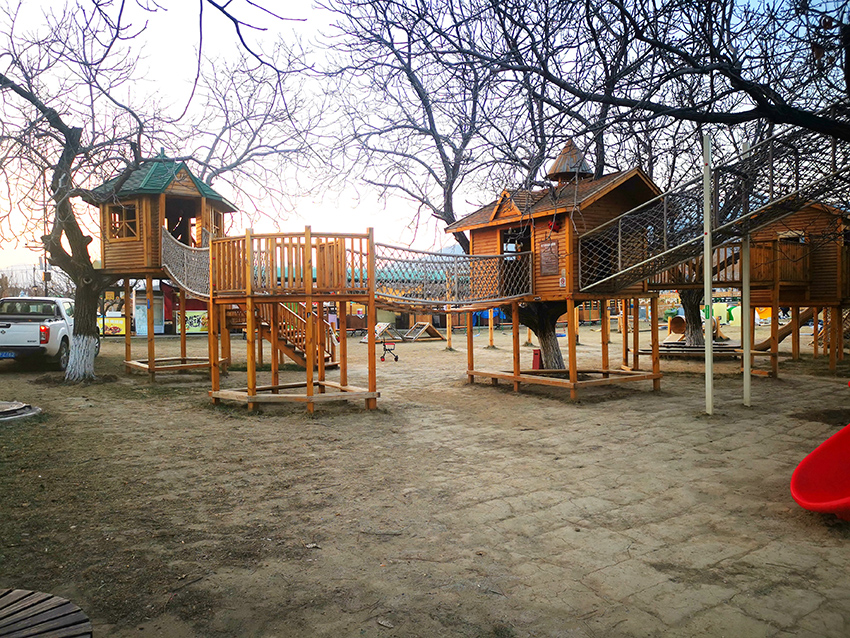 樹屋和樹屋之間采用網繩結構和浮橋做連接,成為樹屋間的紐帶,孩子們可以從任何一個樹屋,然后到達其樹屋,既增加了難度,又增加了可玩性,讓孩子們的能力得到鍛煉。