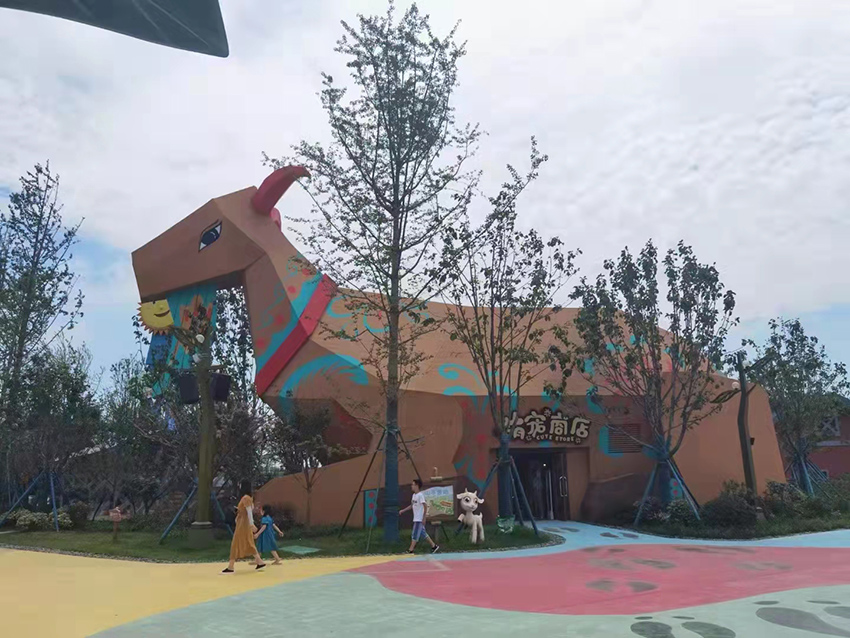 山羊造型的動物商店,有東西售賣,一看就很吸引小朋友的光顧。