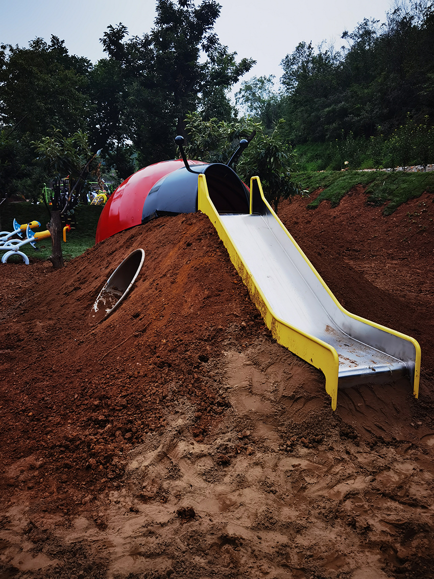 破土而出的七星瓢蟲,采用動物與滑梯的結合,充滿童趣,又具可玩性。