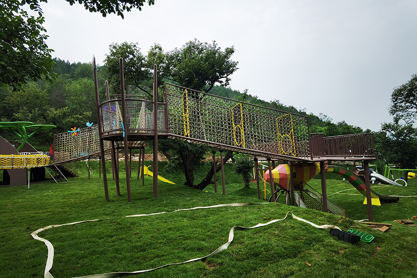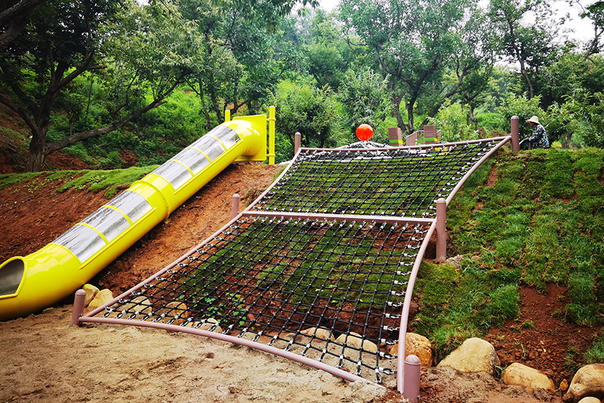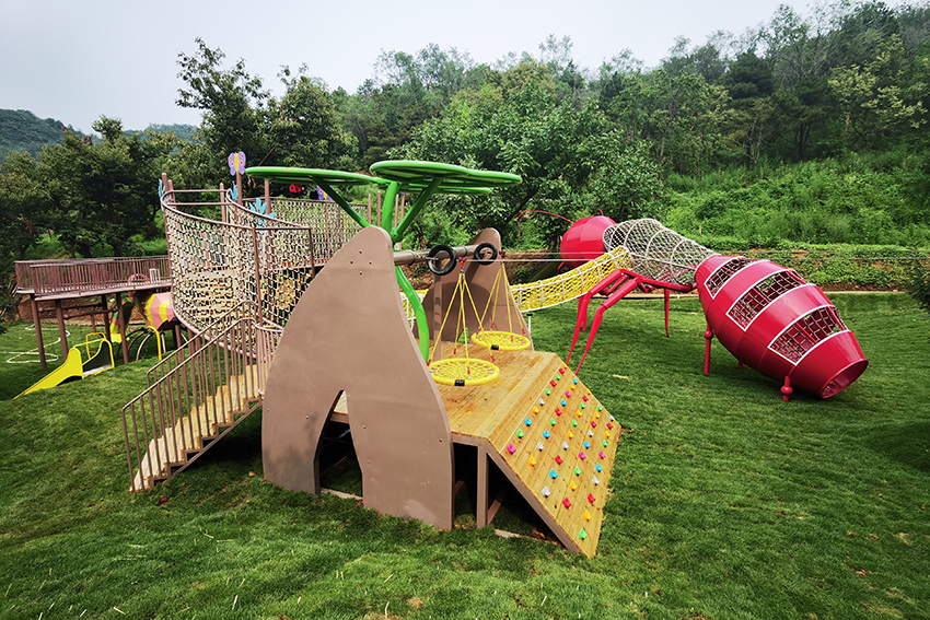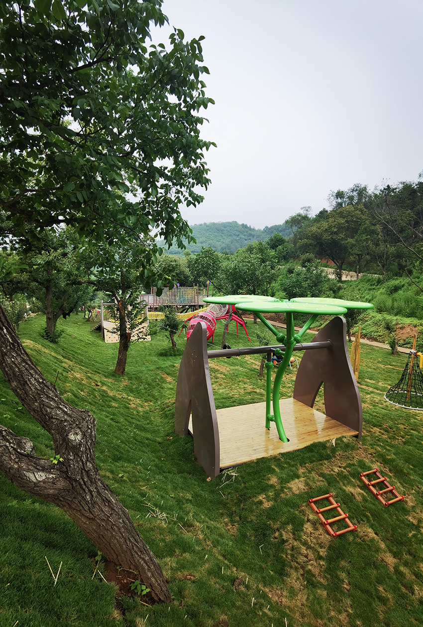 北京平谷嘻谷拾光無動力兒童樂園坐落在平谷大華鎮,整座兒童樂園以草坪為底色,結合各種動物造型的無動力游樂設施,就是一座天然的昆蟲世界。螞蟻、瓢蟲、天牛、蜻蜓…可愛呆萌極了。高樂迪將將科學和 游樂有機融入到自然之中,再結合階梯式地形建有秋千、滑梯、爬網、滑索、蕩橋、蹦床等等讓孩子體驗到鉆、攀、爬、跑、跳、滑等不同的樂趣。