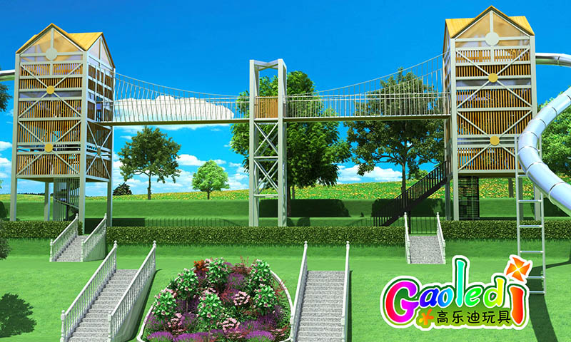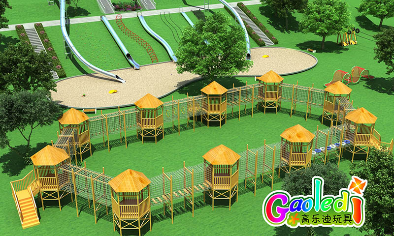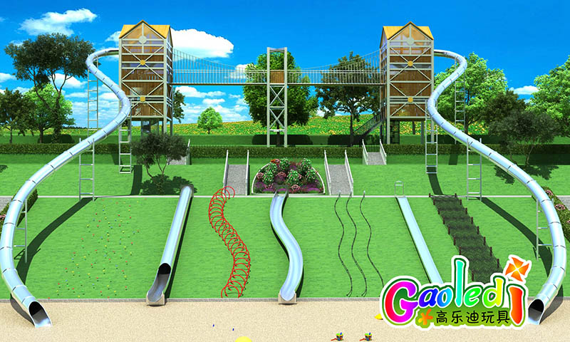 湖北恩施度假村兒童樂園總占地面積2000平米,此次高樂迪為度假村量身定制了超刺激的不銹鋼滑梯及兒童拓展。